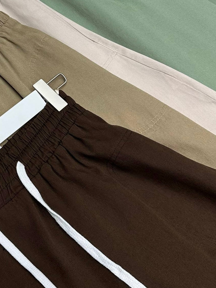 Dos élastique, matière gabardine très épaisse.