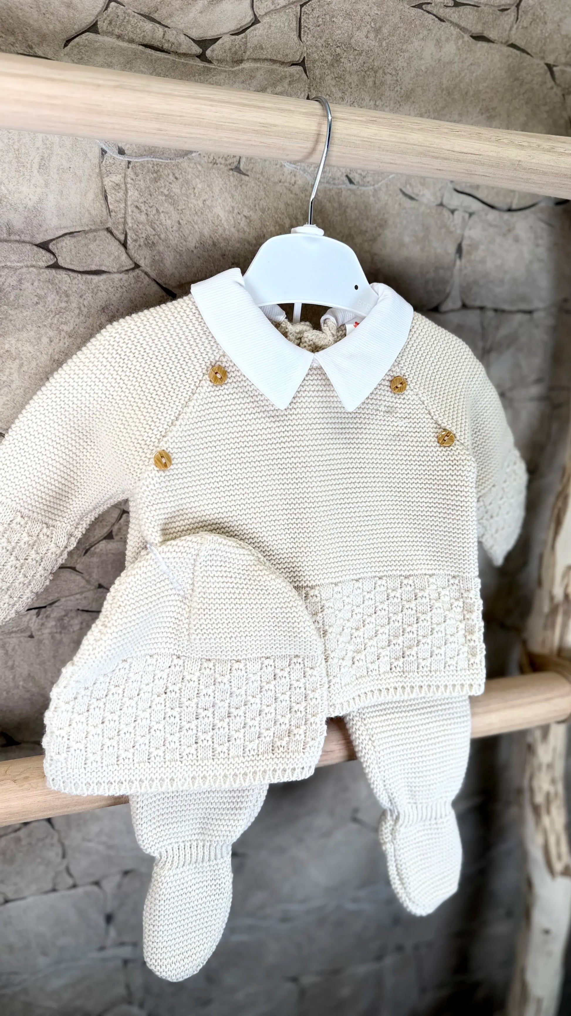 Ensemble Naissance 3 Pièces – Taille 0-3 mois – Beige mixte