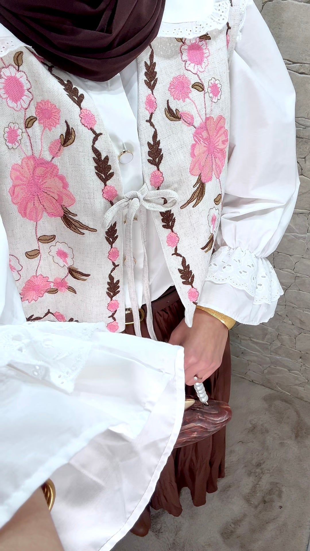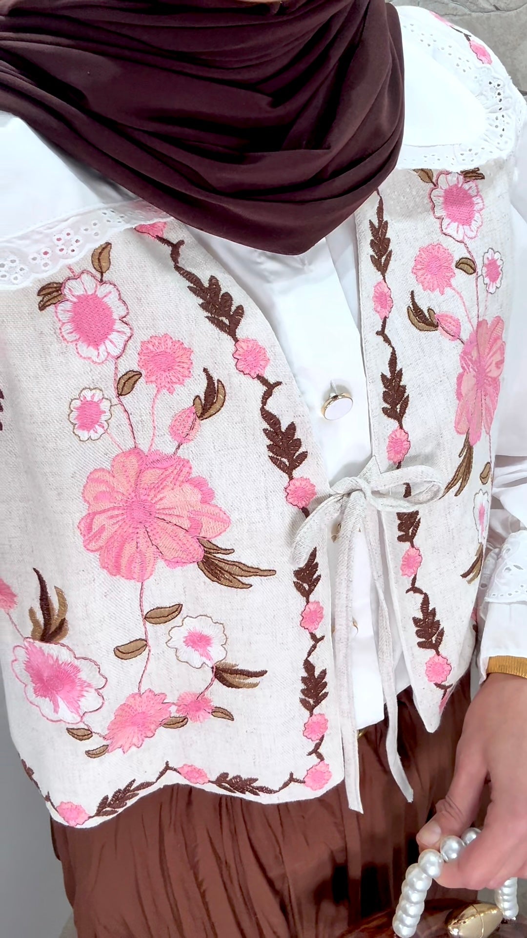 [Premium] Gilet sans manche brodé - crème