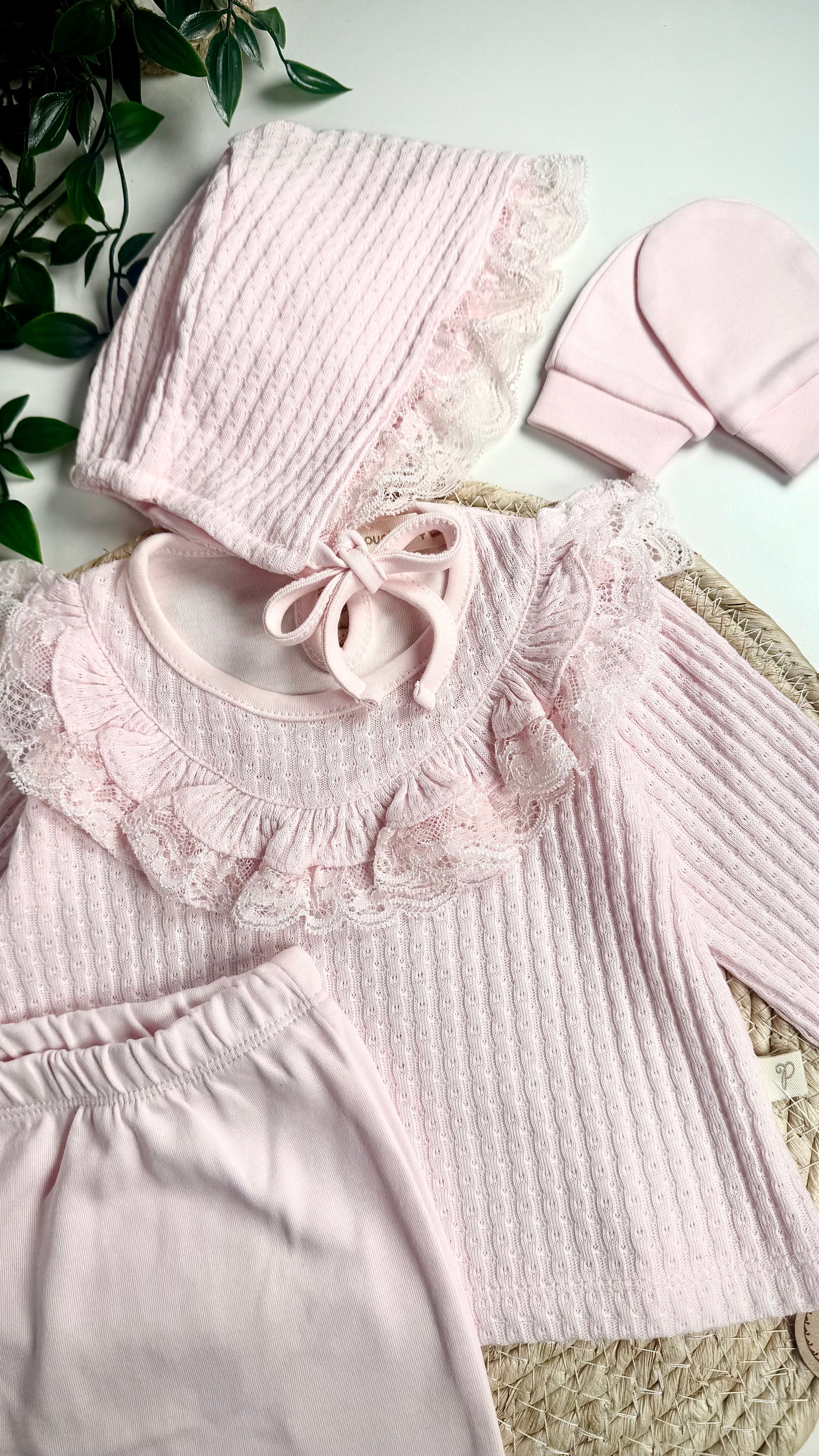Set naissance fille (0-3 mois) à volants - coton bio [rose]